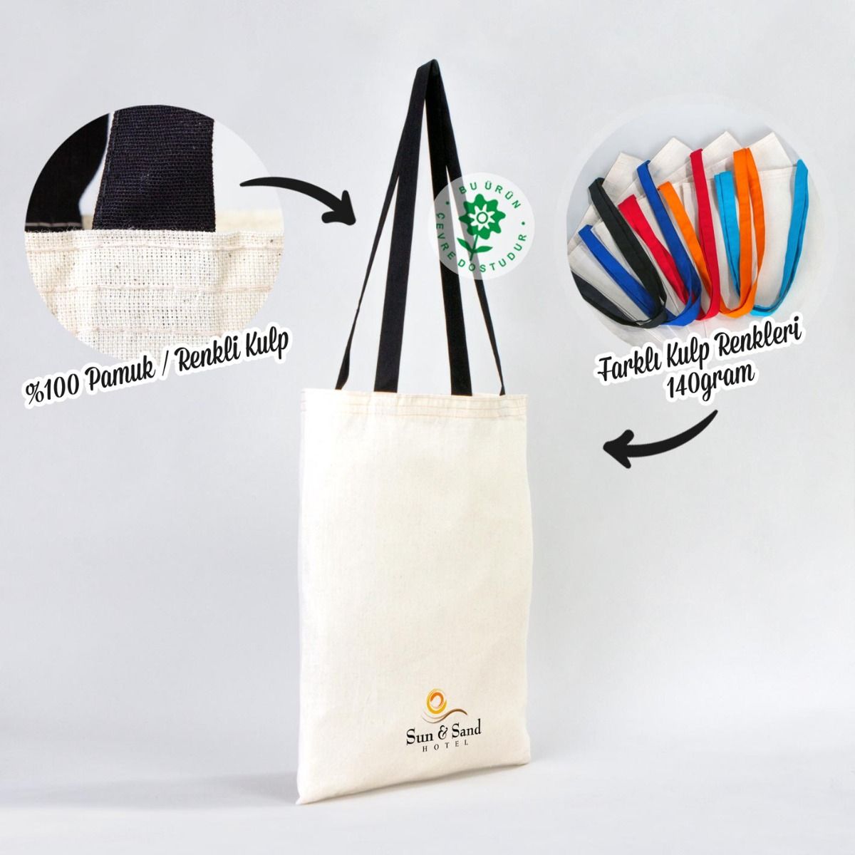 Ürün Adı: Renkli Kulp Ham Bez Çantalar